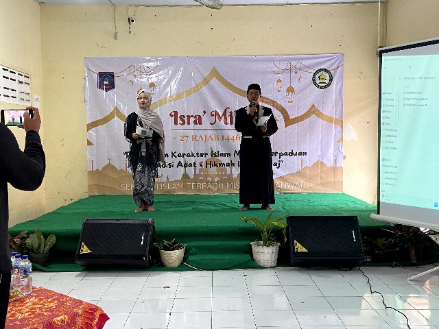 Jombang, 27 Januari 2025 – Sekolah Islam Terpadu Misykat Al Anwar menggelar peringatan Isra’ Mi’raj Nabi Muhammad SAW yang dirangkai dengan kegiatan Panen Karya Projek Penguatan Profil Pelajar Pancasila (P5). Acara ini berlangsung meriah dan khidmat di halaman sekolah, diikuti oleh seluruh siswa SMP dan SMA beserta para guru dan wali murid.